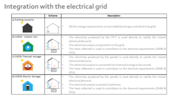 Its ability to contribute to a smarter grid, supplying the main grid with electricity produced by the solar panels. The adaptation capacity of the system, taking into account the electricity prices and the inertia given by the water tank, to optimize the decision to use the heat stored, or to rely on the distribution network. Thus, the project faces the self consumption challenge in urban areas, proposing a solution both for new buildings and existent ones. A business model will be optimised to make the project's industrialization profitable.