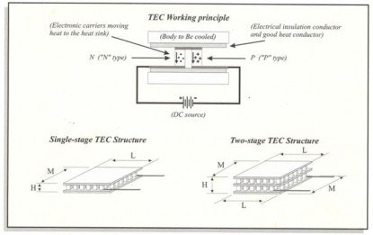 In Spain the company Cidete Ingenieros SL of Vilanova, Barcelona in Spain, offers both Seebeck electricity generating and Peltier cooling thermoelectric devices. The energy harvesting versions employ two stage structure. The company advises the, "In order to generate current from a hot source, establish a temperature difference of at least 70C between the faces of the thermoelectric device. A source at 100C or more can generate five watts of electricity". For more see http://cidete.org/.