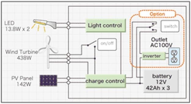 The μ series generators form part of the lighting system and include small and medium sized wind power generators, which can provide up to 11KW of renewable electric power.