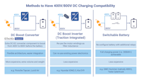 IDTechEx compares the three different ways to have charging compatibility between 400V and 800V. Source: IDTechEx.